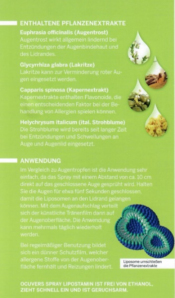 * Neu ab sofort erhältlich: Augenspray ist sehr gut geeignet bei Heuschnupfen da es einen Schutzfilm bildet und somit Allergene Stoffe vom Auge fern haltet. Also nicht nur befeuchtet.