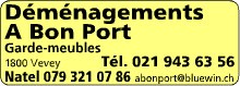 A Bon Port, Vevey. Transports - Déménagements - Garde-meubles - Stockages. Devis gratuit.